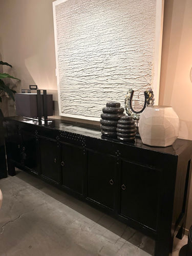 Chinees dressoir hoogglans zwart, afmetingen 250 x 46 x H91, met 6 deuren. Prijs: €3.450,-