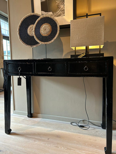 Chinese sidetable hoogglans zwart, afmetingen 106 x 45 x H82 cm, 3 lades, prijs: €1.450,-